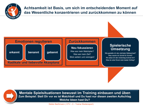 MINDful-Tennis: Raus aus dem Denken und Werten – rein in den spannenden Lernprozess des konzentrierten, fokussierten und bewertungsfreien Beobachtens.